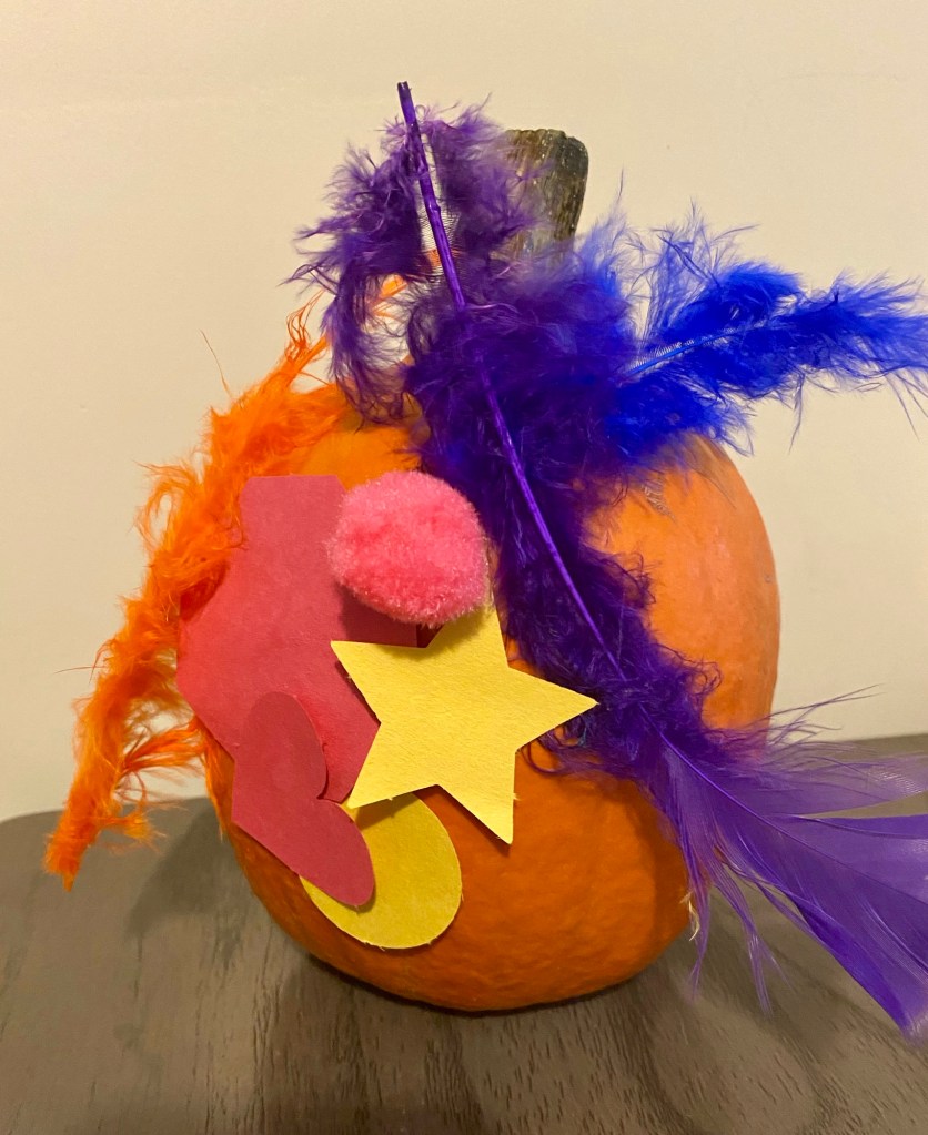 Pumpkin carving can be difficult for little ones. Try getting them a small pumpkin they can paint. Add some glue and let them stick on different shapes, feathers, pompoms, eyes or even bandaids. Kids love it, and they make great decorations for Halloween.